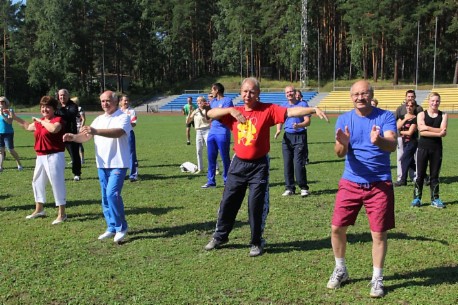В субботу, 13 августа, спортивный праздник железногорцы встретили общегородской зарядкой на стадионе «Труд» и награждением лучших спортивных деятелей.