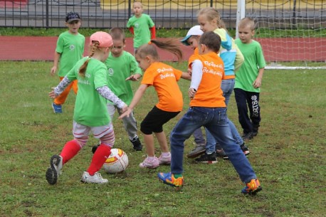 Праздник начался с торжественного построения шестнадцати команд. Красные, желтые, оранжевые - каждой сборной выдали игровую форму, и шеренга из детсадовцев переливалась всеми цветами радуги. Поприветствовать детей пришли глава ЗАТО г.Железногорск Вадим Медведев и депутат Законодательного собрания края, генеральный директор Горно-химического комбината Петр Гаврилов. Они пожелали всем командам удачи и дали старт чемпионату символичной передачей мяча.