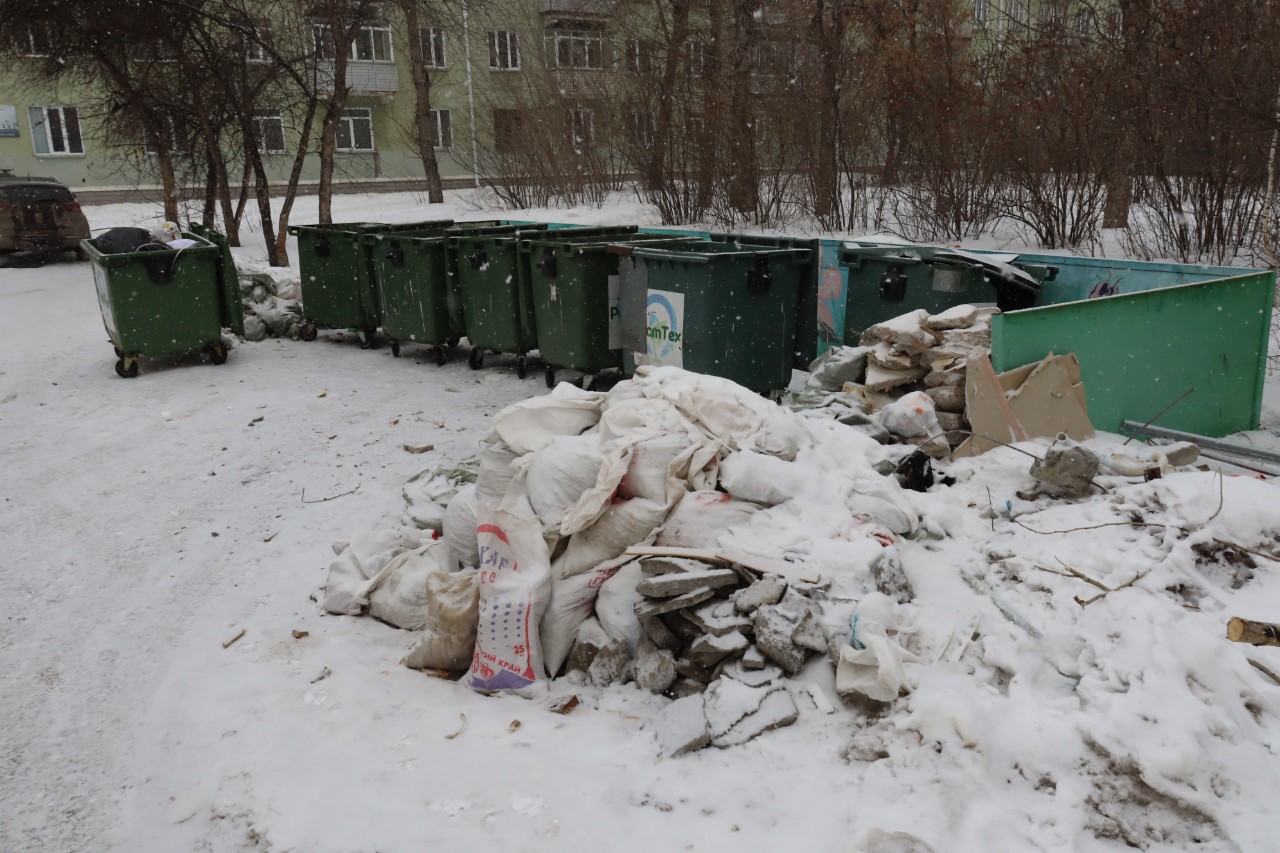 Во дворах за магазином "Аквариум" находится место сбора мусора. Контейнеры там регулярно вычищают, а вот свалку вокруг не убирают. В основном там мешки со строительным мусором, который "Росттех" вывозить не обязан.