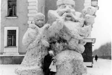 Фотографии из ретро-подборки ГиГ. Посмотреть снимки можно с хэштегом #Железногорск_в_старыхфото. Гигантские снежные фигуры перед главным входом в парк. Конец 70-х прошлого века. Фото из личного архива Маргариты Соседовой.