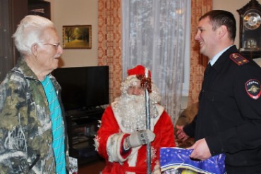 В Железногорске полицейский Дед Мороз поздравил с Новым годом участника Великой Отечественной войны,первого эксперта-криминалиста ОВД.