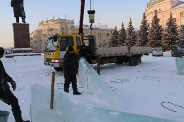 На главную площадь города привезли ледяные блоки. Скоро здесь появится Дед Мороз со Снегурочкой и замок с лабиринтом. Затем резчики по льду приступят к созданию городков на площадках перед ЦД и ДК «Юность» и в поселках ЗАТО. Этой зимой объединяющей темой праздничных ледяных строек станут сказки.
