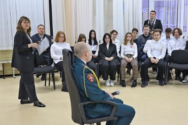 В школе № 97 неделя началась со встречи с необычным гостем — участником СВО, военнослужащим железногорской воинской части Красноярского соединения Росгвардии.