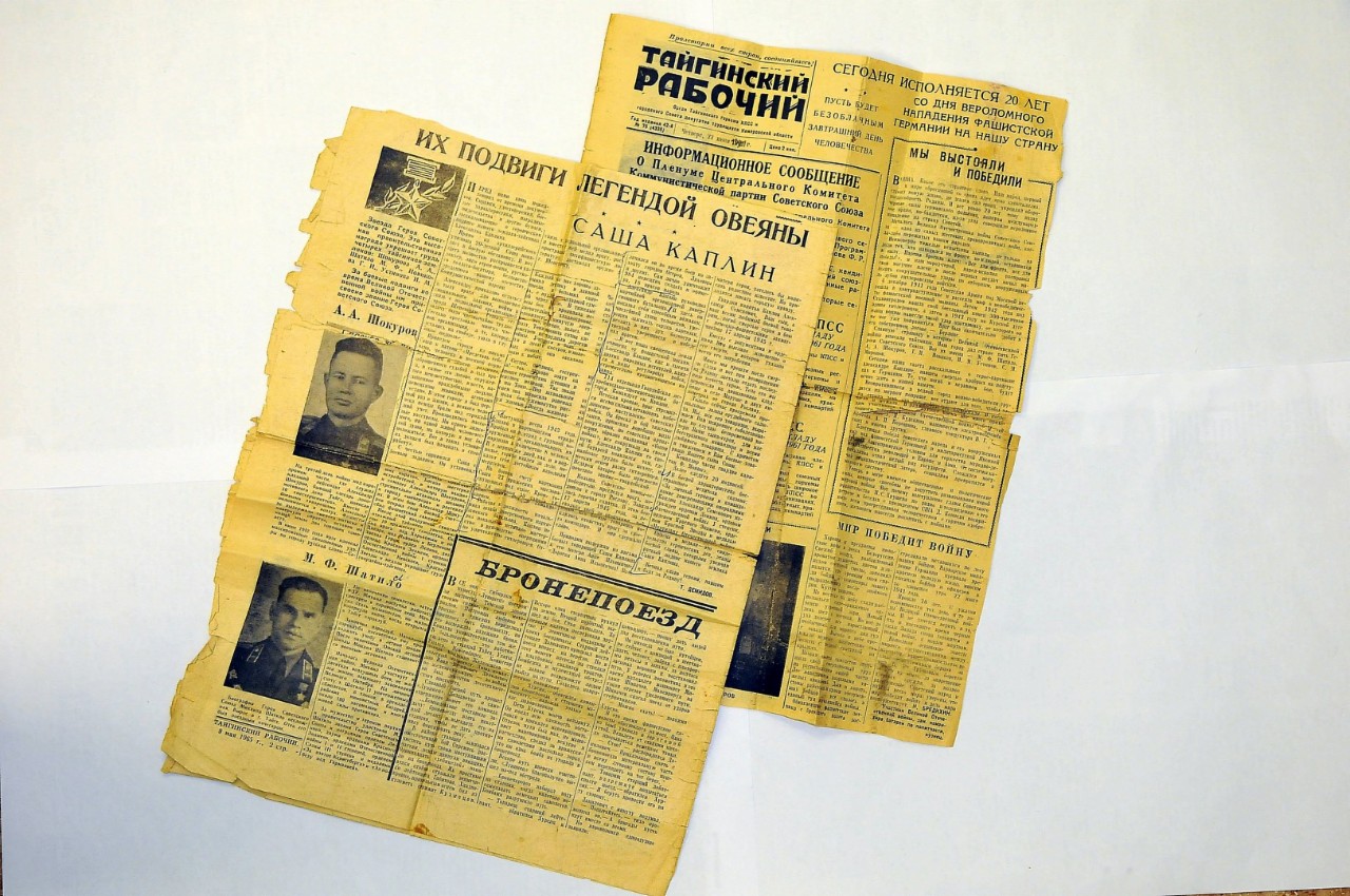 Юрий Викторович бережно сохранил страницы газеты «Тайгинский рабочий» 1961 и 1965 годов со статьями о своем родственнике. Пожелтевшие от времени и практически рассыпающиеся в руках листки - единственные сохранившиеся у железногорца свидетельства подвигов советского партизана.