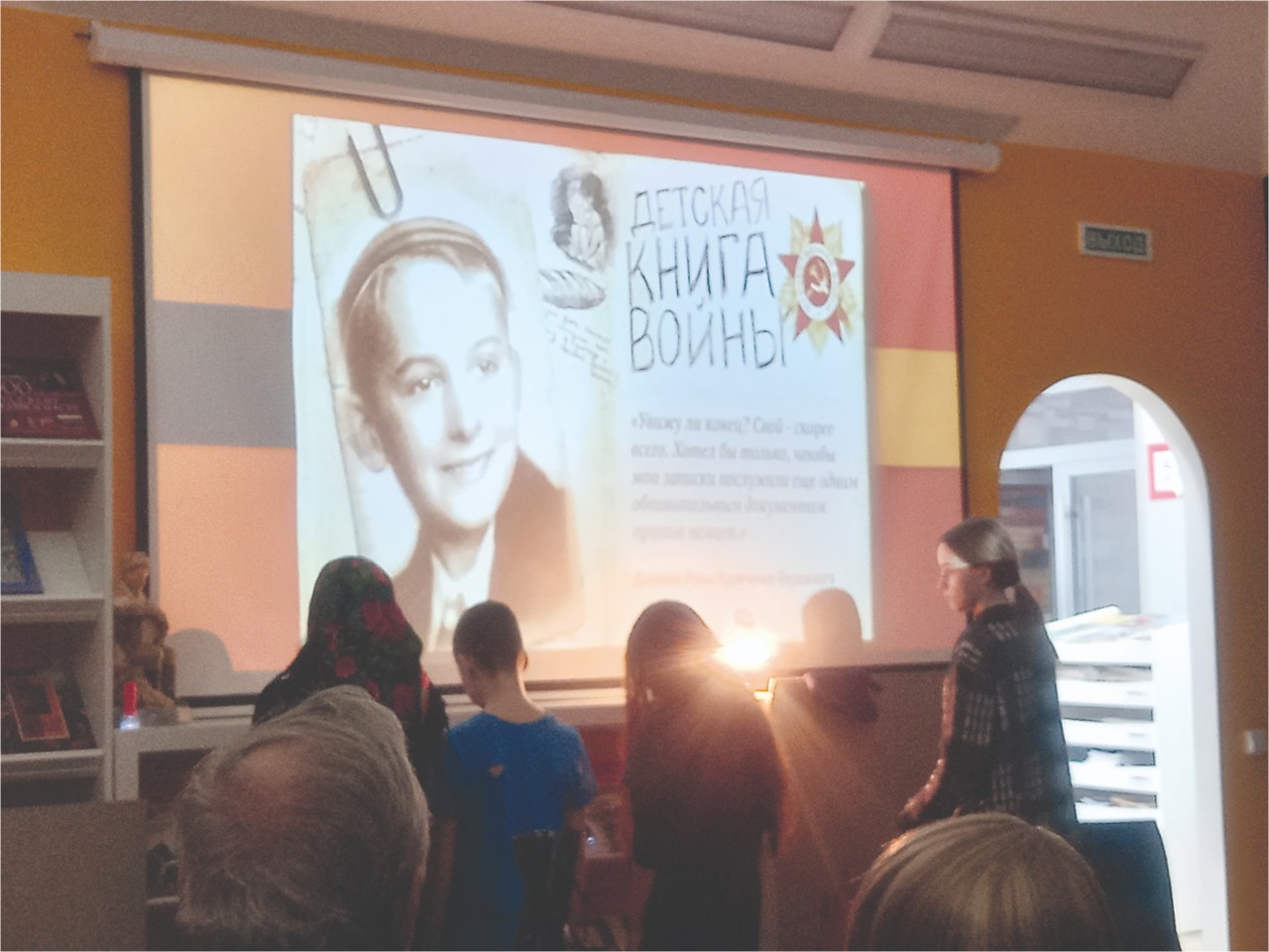 Спектакль «Детский дневник войны» библиотекарь Виктория Бутырина поставила по книге «Дети войны», написанной журналистами газеты «Аргументы и Факты». В книге собраны 37 историй детей, испытавших на себе ужасы войны, немецкой оккупации, блокады Ленинграда, фашистского рабства, еврейских гетто и концлагерей. Мальчики и девочки, оказавшиеся в нечеловеческих условиях, писали дневники – на клочках бумаги или просто хранили все свои переживания в голове – для того, чтобы такое никогда не могло повториться. Ведь дети и война несовместимы.