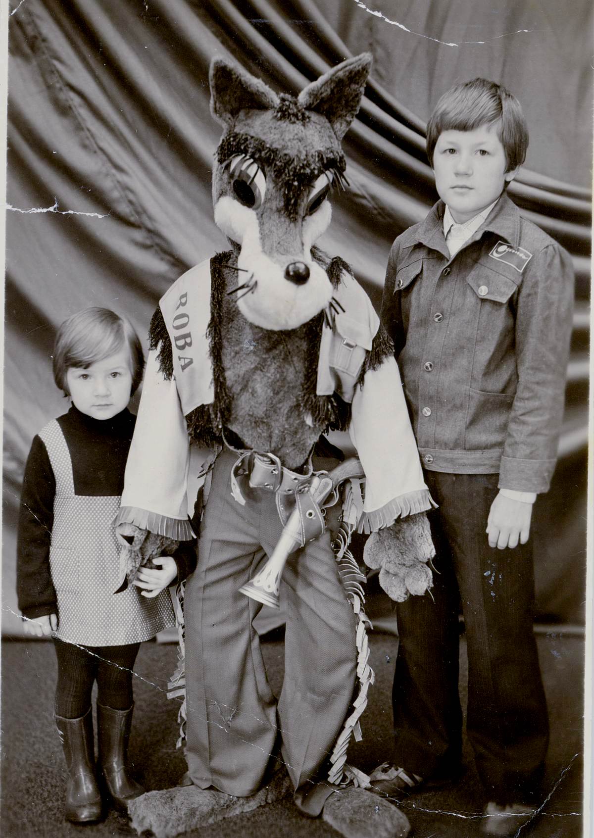 А сколько всего еще нужно было для работы. Фонари освещения, зонты с лампами, вспышки, прожекторы, фоны, макеты, торшеры. Лошадки, машинки, ростовые куклы. В «Сказке» на Курчатова имелся большой подиум в виде крутящегося круга. Он был разделен на три интерьерные зоны: игрушечный домик, столик для съемки грудничков и космический корабль. А уж детская фотография в обнимку с огромным зайцем или волком, наверное, в альбоме каждого железногорца имеется.