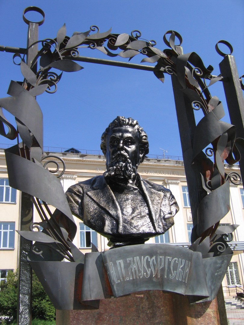 В 1978 году при благоустройстве школьной территории главный художник города Валерий Григорьев установил бюст Мусоргского на новый пьедестал из розового мрамора и украсил декоративными деталями - стилизованным изображением камертона и бронзового венка. Детали композиции были выполнены из стали и красной листовой меди, что, разумеется, не могло не заинтересовать собирателей драгметаллов.