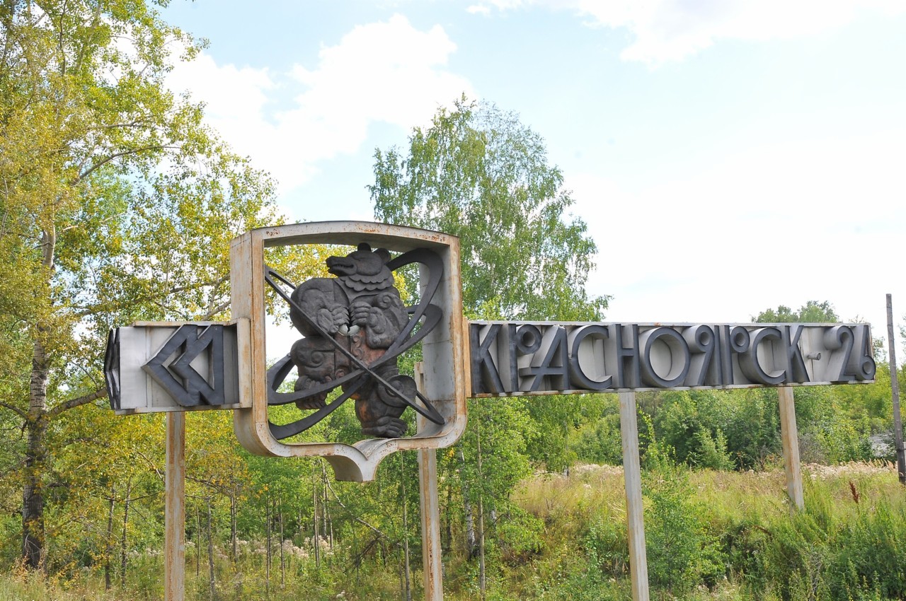 Символ мираПри въезде в город, напротив поклонного креста, расположена еще одна визитная карточка города - указатель с надписью «Красноярск-26» и гербом города. На гербе расположен медведь, разрывающий ядро в структурной решетке атома. Железногорским мишкой уже интересовались американцы, французы и другие заграничные коллеги, периодически публикующие рейтинги, по их мнению, то самых странных гербов, то самых креативных. В обоих списках присутствует наш косолапый.