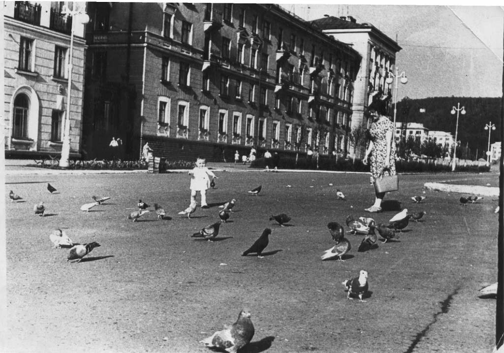 «Кто в Москве не любовался на тысячные стаи мирных птиц на Красной и Манежной площадях? Добрая традиция столицы и крупных городов нашей страны скоро найдет продолжение и в нашем молодом городе. Уже начато разведение голубей. 60 птичьих новоселов поселилось на чердаке Дома культуры. Здесь они под руководством голубевода Владимира Крохина пройдут, так сказать, «стажировку», привыкнут к новому месту и уже через три недели, освоившись, будут делать первые вылазки на площадь. Всего предполагается развести более полутысячи голубей, которые будут местожительствовать не только на чердаках Дома культуры, но и на чердаках строящегося горсовета, центральной гостиницы и дома со шпилем. Недалеко то время, когда над площадью закружатся голубиные стаи, когда они мирно будут принимать корм из добрых рук горожан. Голуби на площади придадут нашему городу вид еще более приятный и красочный».