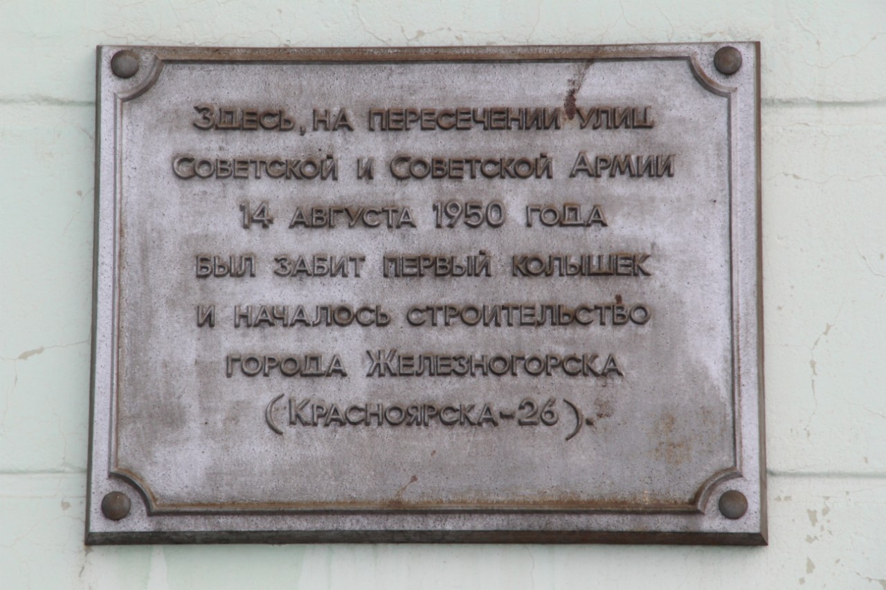 В-третьих, 14 августа 1950 года на перекрестке будущих улиц Советской и Советской Армии был забит символический колышек, с которого, по мнению некоторых летописцев Железногорска, и начиналась его история.