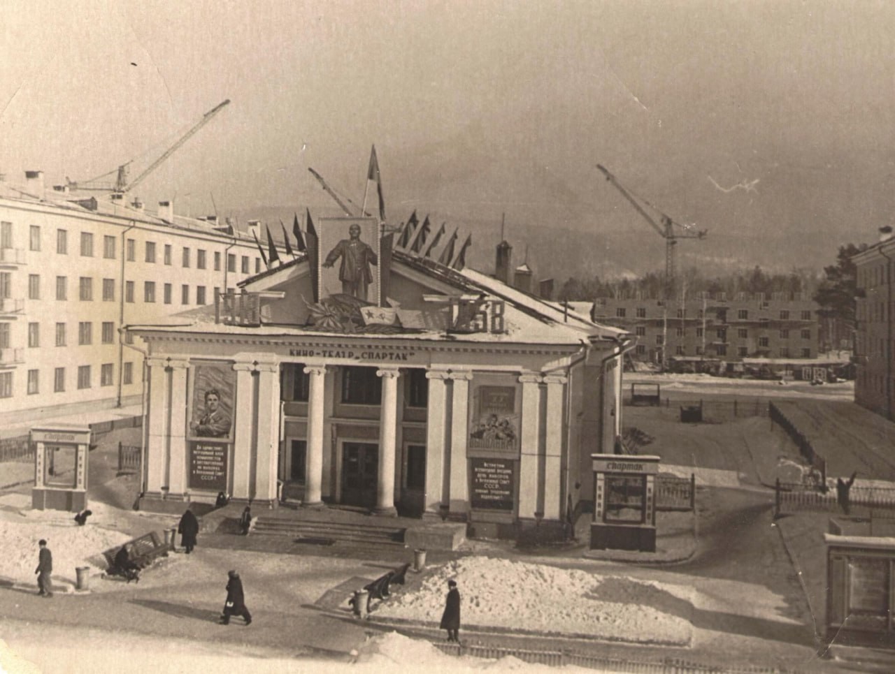 1952 года стояла на редкость теплая. Первый фильм, который демонстрировался в «Спартаке», был экранизированный спектакль «Анна Каренина». Билеты были проданы за неделю. Наши строители умеют строить красиво, добротно и быстро. Подъезд был расчищен, через канавы проложены мостики. Внутренняя отделка здания нас привела в восторг, а сам фильм произвел лично на меня незабываемое впечатление, игра Тарасовой покорила. Фильм кончен, настала пора выходить из кинотеатра. Представьте на одну минутку, что нет ни одного фонаря у выхода здания. И вот я вдруг чувствую, что проваливаюсь куда-то. Конечно, это была яма, заполненная строительными отходами и грязью. Мех на пальто пришлось выпороть и выбросить. А пальто, не поддающееся никакой чистке, – выстирать. Несмотря на такое печальное окончание культпохода, мы были довольны, что наконец-то в нашем городе есть свой собственный кинотеатр.