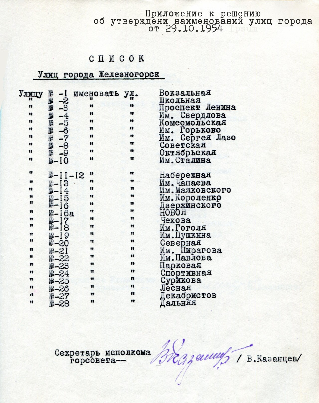 Год образования нашего города – 1954-й. До этого времени все вопросы, связанные с городским хозяйством, народным образованием, вопросами быта и культурного досуга горожан, чистотой улиц и кварталов, уборкой сена в совхозе и многим другим решали руководители строительства. Остро назрела необходимость освободить руководство от несвойственных ему функций. Поэтому 17 марта 1954 года Указом Президиума Верховного Совета РСФСР населенный пункт при комбинате №815 был преобразован в город областного подчинения.
