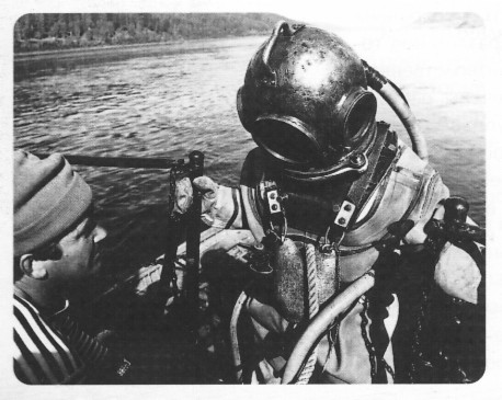 Собственно водозабор представлял железобетонную трубу из перфорированных колец метров 50 длиной. Туда затекала вода, а затем поступала в оголовок и на промобъект. ГЭС еще не было, и Енисей тогда замерзал. В ясные морозные дни на камнях образовывался донный лед. Чтобы оборудование не перемерзало, делали еще зимний водозабор. Это конструкция весом 300 тонн. Собирали ее отдельно, на берегу. И затем со стапелей нужно было отправлять на место, где оголовки монтировались. До первого водозабора - 800 метров, до второго - 1200. Первый тянули зимой 1954 года. Летом побоялись, что утонет конструкция, - мало ли что могло случиться. Работы вело подразделение ЭПРОН (Экспедиция подводных работ особого назначения. - Авт.), военные водолазы. Их контора располагалась на Прижиме в двух бараках: кубрик, камбуз и штаб. Это они под водой готовили основания для прокладки трубопроводов и оголовков водозабора.