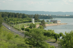 ![]() Вид на городской пляж. | ![]() Обелиск строителям города. Построен в 1975 году. |