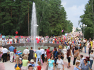 ![]() Полуротонда с балюстрадой. Построена в 1959 году. | ![]() Народные гуляния возле фонтана. |