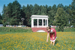 ![]() Памятник С.М.Кирову открылся в 1961 году. В 1993 году он демонтирован. | ![]() Беседка в парке, 1950-е. Из архива М.В.Яковлевой. |