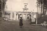 ![]() Возле памятника В.И.Ленину и И.В.Сталину в парке, 1956 год. Из архива О.Х.Бондаревой. | ![]() Пропилеи входа в парк (1956). Архитектор И.Б.Орлов. |