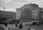 ![]() Строители города на демонстрации трудящихся. | ![]() Строительство школы № 176 на Свердлова,9 (1962 год). |