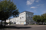 ![]() Кинокомплекс «Космос» оборудован по последнему слову техники. Построен на месте сгоревшего кинотеатра. | ![]() Аллея на Свердлова - излюбленное место молодых мам. |