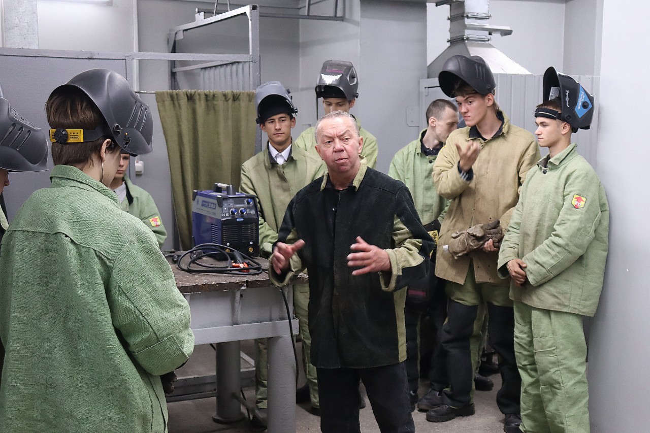 На занятиях всегда дружественная атмосфера. Студенты внимательно слушают мастера, он – четко доносит информацию. На практический урок пришли и ребята старшего курса. Они уже владеют сварочным аппаратом и выступают помощниками будущих специалистов. И вот вчерашние школьники варят свои первые швы. Юрий Николаевич говорит, что за время обучения у него со студентами выстраиваются доверительные отношения. И они легко могут обратиться с личным вопросом или попросить совета.
