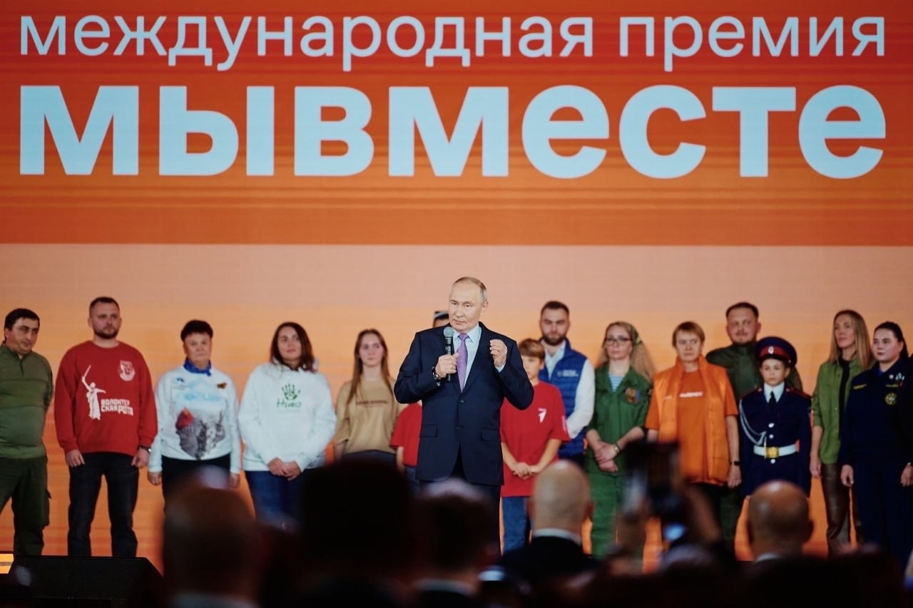 В церемонии вручения Международной премии #МЫВМЕСТЕ приняли участие герои СВО, волонтеры, почетные гости и артисты. Президент России Владимир Путин вручил награду «Волонтер года» Марии Карпенко из Курской области за организацию медицинского, продовольственного и вещевого складов, а также цеха по производству антитепловизионных маскировочных сетей. Глава государства дал старт Всероссийской акции «Елка желаний», сняв первые открытки участников акции с новогоднего дерева.