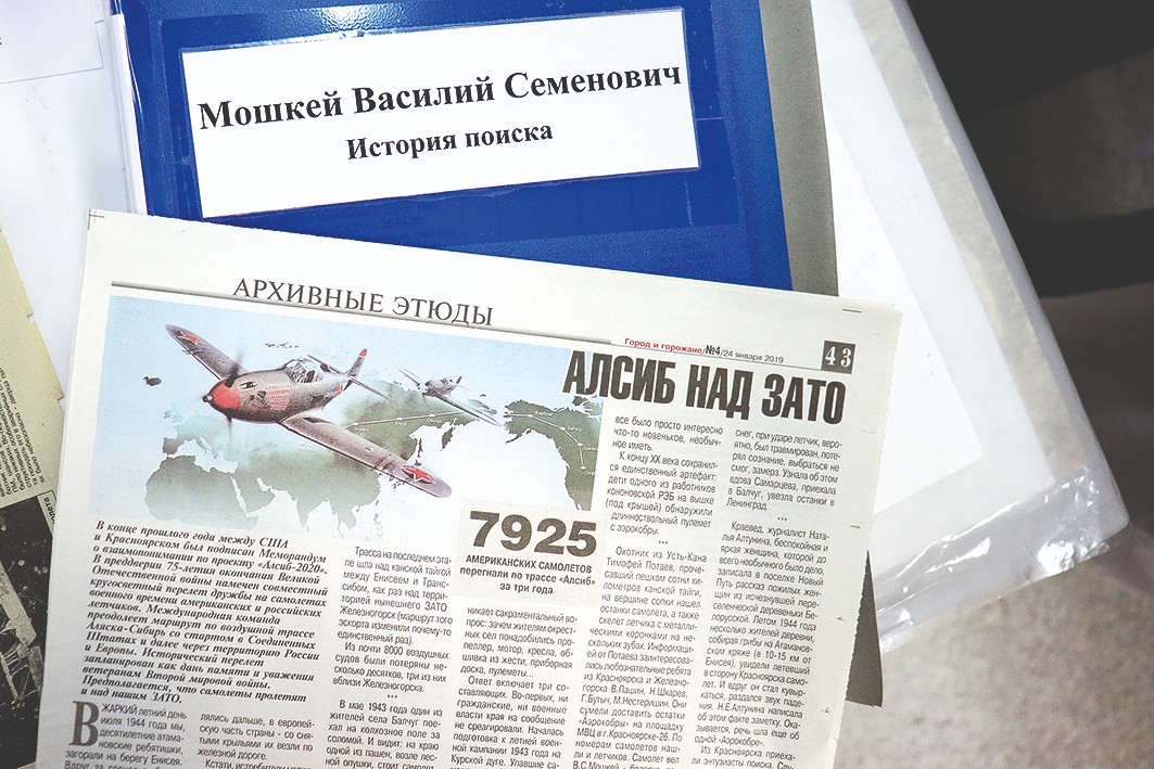 Напомним, авиатрасса «Аляска-Сибирь», длиной 6500 километров. За 10месяцев построено 16 аэродромов и 274 вспомогательных сооружения. Первая партия самолетов достигла Красноярска 29 сентября 1942 года, а всего за годы войны по маршруту «Алсиб» на фронт было отправлено 7308самолетов, из которых особенно ценными в боевом использовании были истребители P-39, или «Аэрокобра». Именно такой самолет потерпел крушение в устье реки Кан. А пилот Василий Мошкей до сентября 1985 года числился среди пропавших без вести.