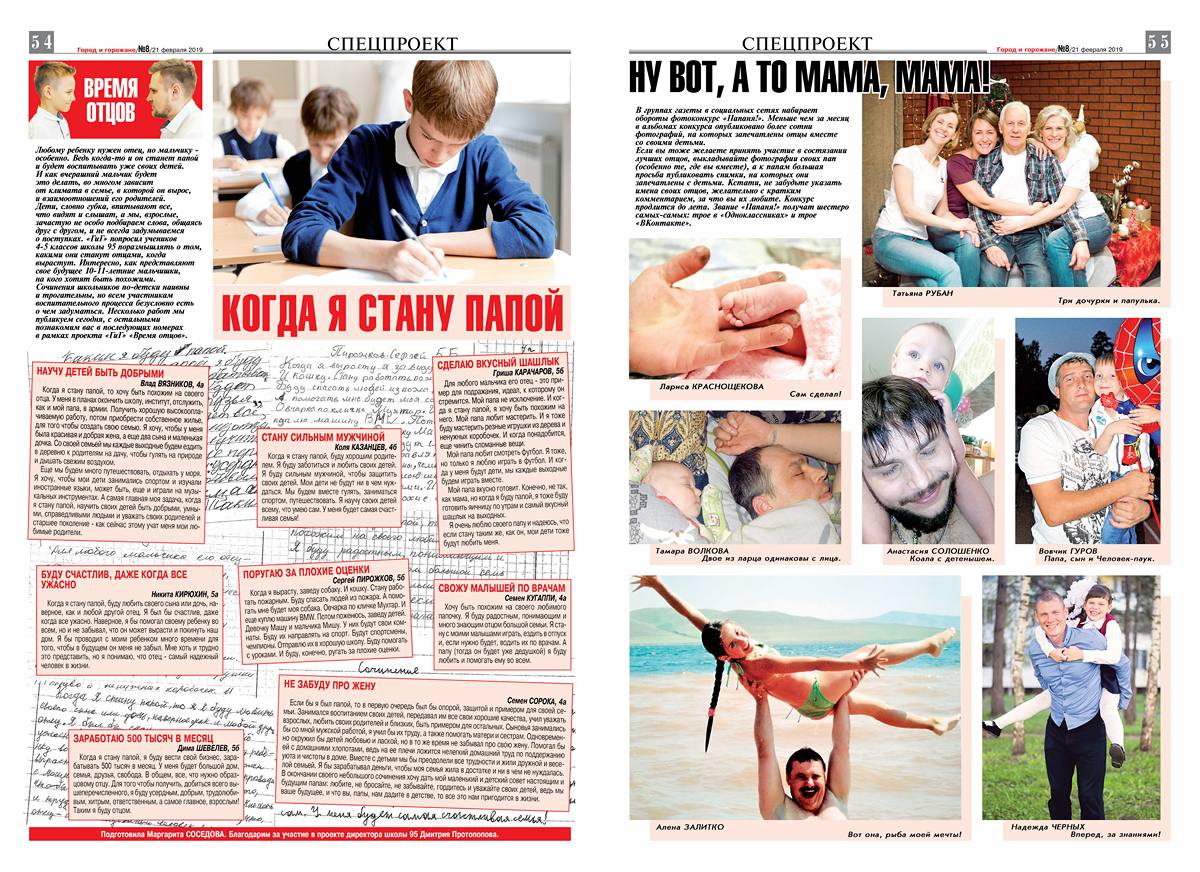 Любому ребенку нужен отец, но мальчику - особенно. Ведь когда-то и он станет папой и будет воспитывать уже своих детей. И как вчерашний мальчик будет это делать, во многом зависит от климата в семье, в которой он вырос, и взаимоотношений его родителей. Дети словно губка впитывают все, что видят и слышат, а мы, взрослые, зачастую не особо подбираем слова, общаясь друг с другом, и не всегда задумываемся о поступках. «ГиГ» попросил учеников 4-5 классов школы 95 поразмышлять о том, какими они станут отцами, когда вырастут. Интересно, как представляют свое будущее 10-11-летние мальчишки, на кого хотят быть похожими. Сочинения школьников по-детски наивны и трогательны, но всем участникам воспитательного процесса безусловно есть о чем задуматься. Несколько работ мы публикуем сегодня, с остальными познакомим вас в последующих номерах в рамках проекта «ГиГ» «Время отцов».