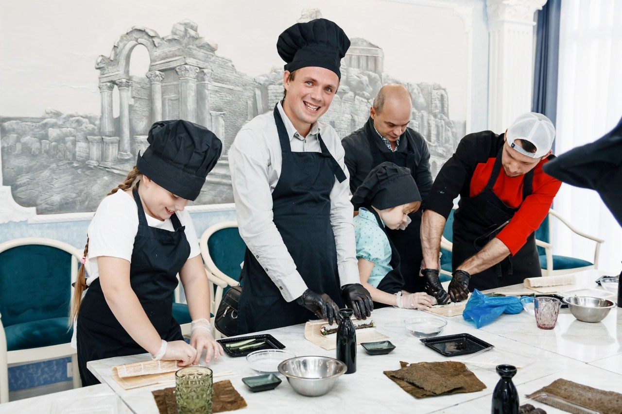 Герои, в студию!Для участия в конкурсе заявились восемь команд, но до финала дошли только четыре. Тандемы «папа & дочка» уже познакомились друг с другом: приняли участие в профессиональной фотосессии, после чего научились готовить настоящие японские роллы под руководством повара-сушиста. Выходные дни для команд пролетели незаметно: дружно и весело. Пора и нам познакомиться!Ловись, рыбкаПапа: Евгений Ганцгорн, индивидуальный предприниматель
