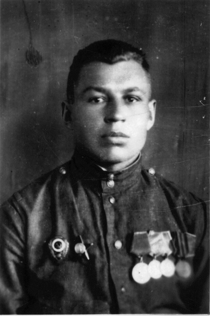 1915 г.р., начал действительную службу в армии в 1938 году, потом война. Был снайпером, защищал Сталинград, освобождал Румынию, Болгарию, Чехословакию, Югославию, Австрию. До 1946 года уничтожает бендеровских бандитов на Украине.