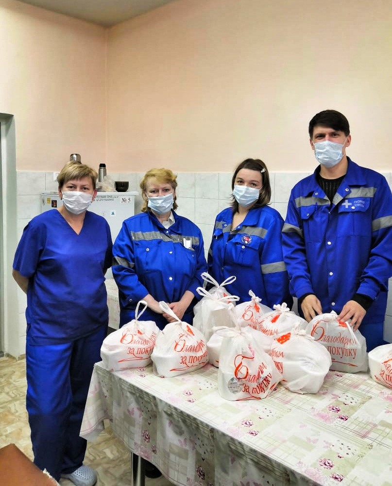 Наши коллеги из рекламного издания «PROдвижение», узнав об экстремальном режиме работы сотрудников скорой помощи, решили организовать для них доставку бесплатного питания. Это ведь очень важно, чтобы хотя бы один раз в сутки человек смог нормально поесть. Идею сразу поддержали несколько предпринимателей-рестораторов. И теперь каждый день, включая выходные, медикам везут пакеты с провизией.
