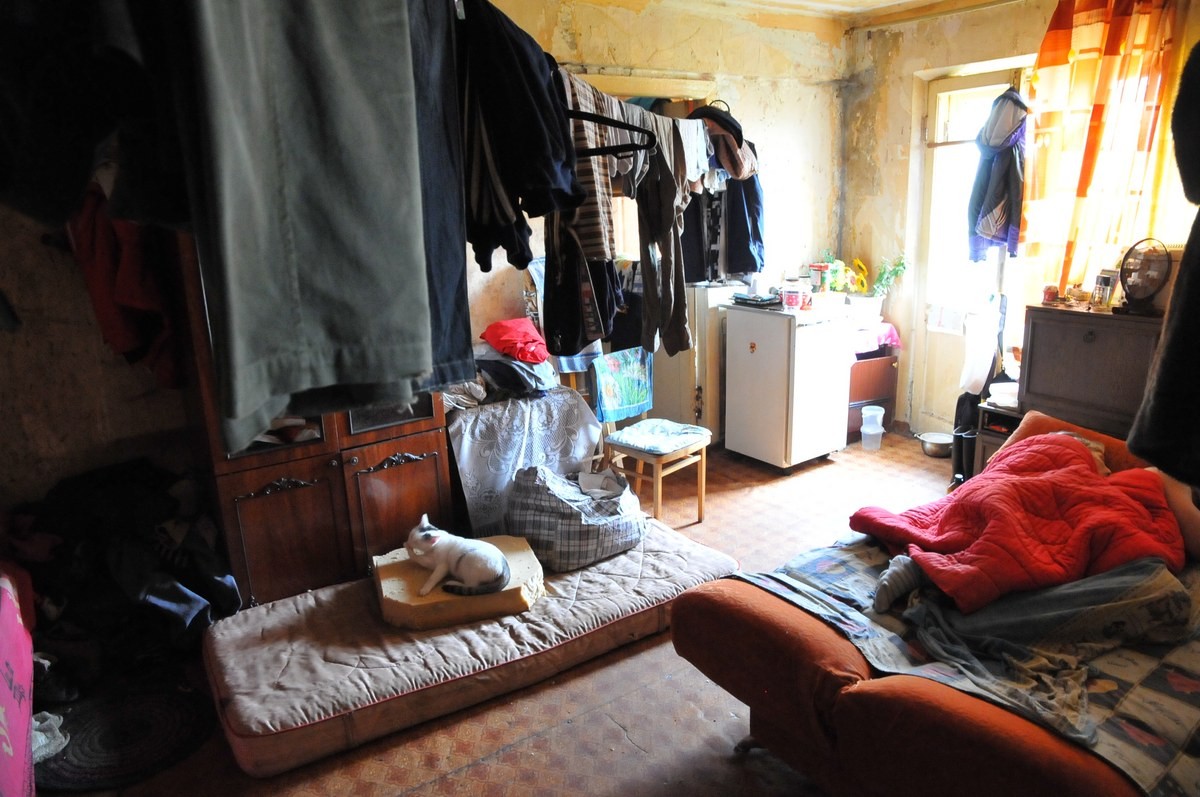 Пожилые мужчина и женщина со старой детской коляской, доверху нагруженной какими-то пакетами, бродят по улицам старой части города, роются в мусорных контейнерах, собирают выброшенные вещи, а потом везут их в свое укромное место. Официально они бездомными не являются. У парочки есть жилье, вернее, угол в двухкомнатной квартире на Кирова. По информации ГЖКУ, когда-то здесь было прописано 23 человека, но 17 из них по суду выписали, потому что не проживали и коммунальные услуги не оплачивали. Квартира поделена на мелкие доли, у одного из собственников всего 1/512 (!). Но постоянно живут только шестеро. За квартиру не платят, долг за коммуналку стремительно подбирается к полумиллиону.