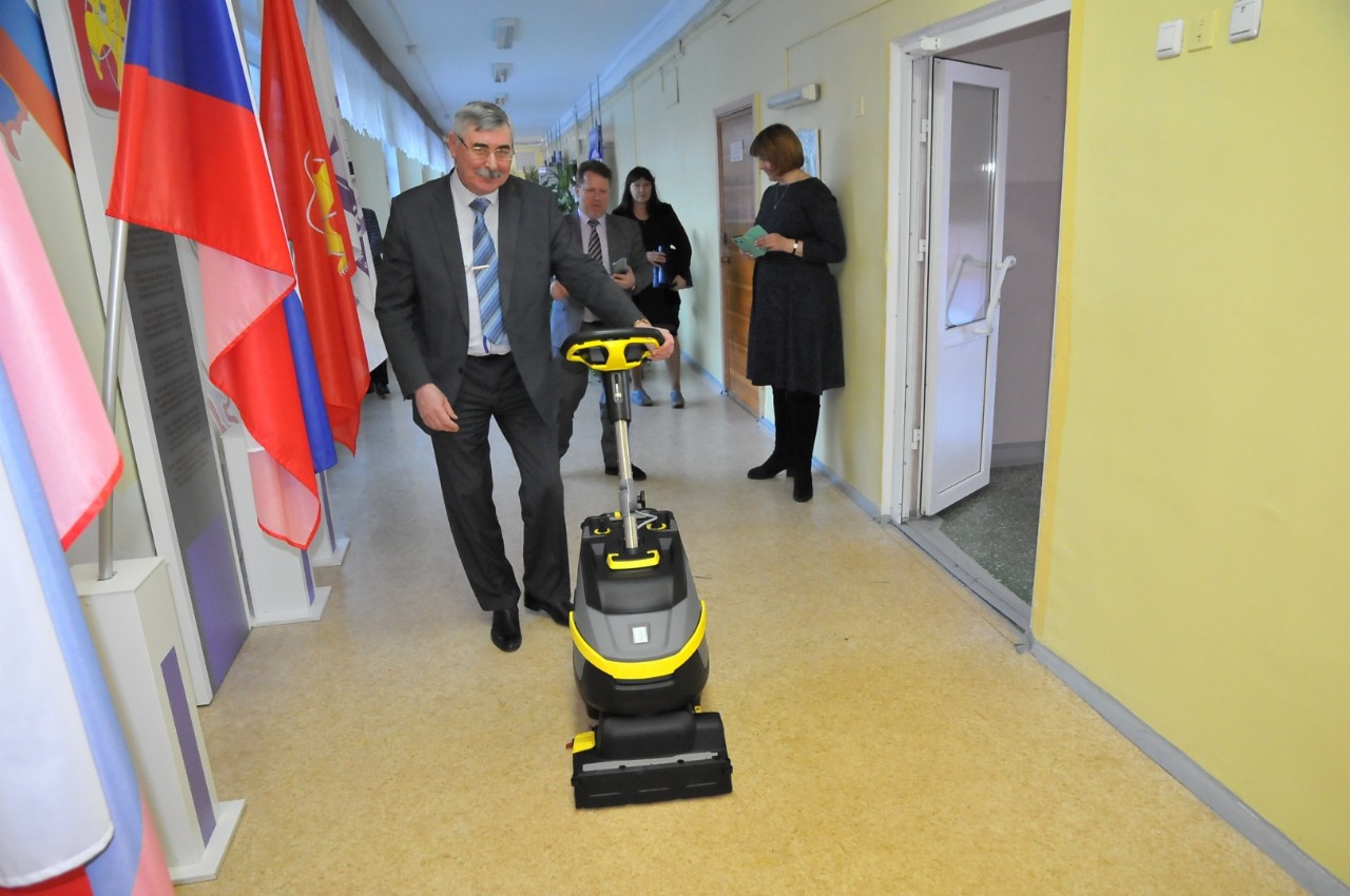 Не дожидаясь решения проблемы с зарплатой техничек, школа приобрела моющую технику, которая позволяет практически полностью заменить ручной труд нескольких человек. Правда, уже сегодня понятно, что швабры далеко убирать не станут - не все уголки здания школы доступны для машин…