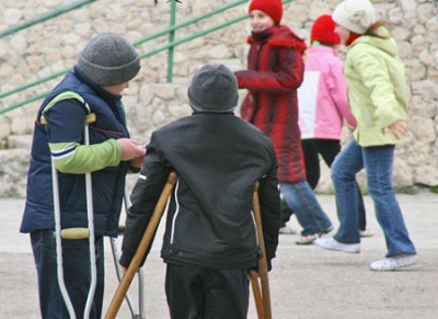 Действительно, появление в школе первоклассницы на костылях сначала вызвало большой ажиотаж среди учеников. Но девочка, уже подготовленная к ситуации, его не замечала. Прошло несколько недель, и все привыкли к необычной ученице. А вскоре одноклассники стали провожать новую подружку от дома до школы и обратно. Сейчас девочка уже ходит без костылей.