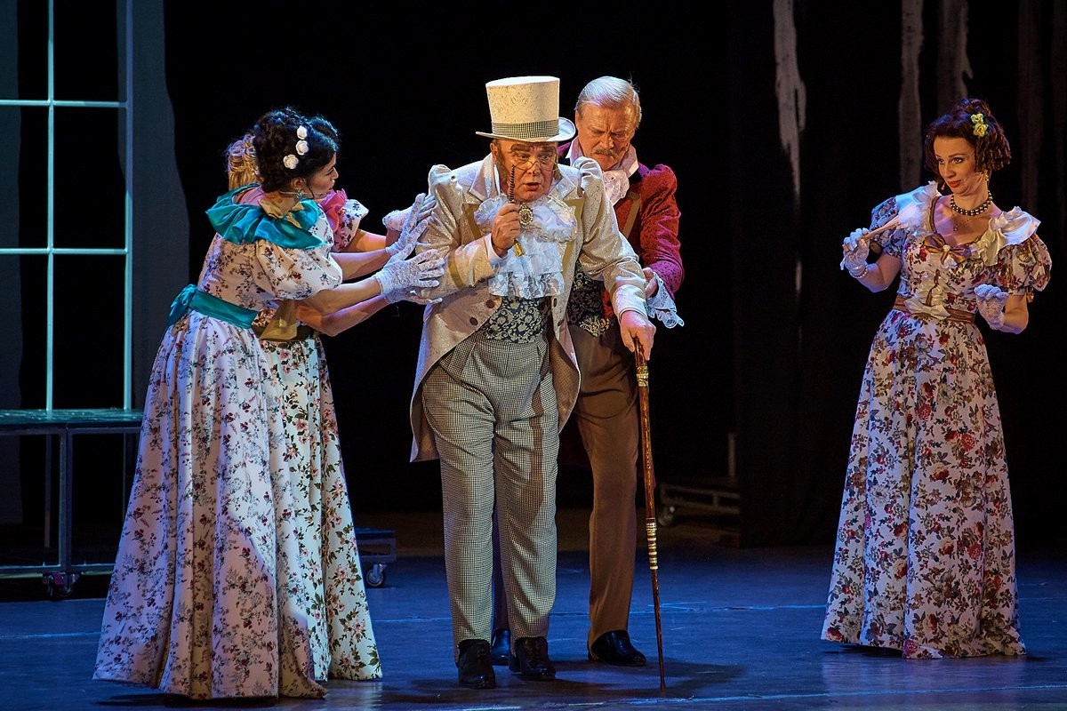 «Поздно - я обвенчана, я жена князя Верейского!» Эта цитата из пушкинского творения наверняка известна многим. И звучит она в мюзикле как приговор для двух любящих сердец. Неотвратимый и жестокий. Заслуженный артист РФ Николай Алексеев в роли князя Верейского был одновременно и смешон, и наивен, и расчетлив. Ему под стать была компания соседей-помещиц и помещиков. Эту «придворную свиту» великолепно исполнил ансамбль солистов театра – заслуженная артистка РФ Вера Алексеева, Ирина Чиканова, Ольга Зайцева, Алена Эсаулова, Наталия Рон, Сергей Китаев и артист хора Вячеслав Травянко.