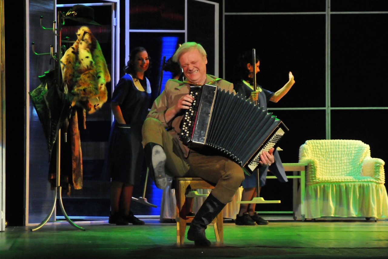 Сложность спектакля в том, что он драматический, мы добавили в него музыкальные номера, чтобы приблизить его к музыкальному. Но актеры играют по правилам драматического театра. И для них это была серьезная и сложная работа. В оперетте большую роль играет музыка, а в этом спектакле артисты находились в непривычной для себя атмосфере.