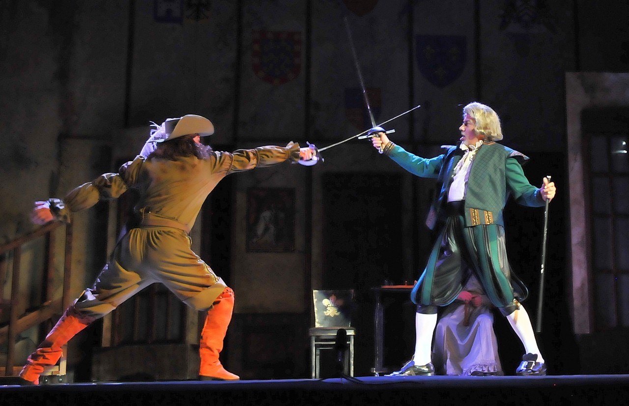 О своей работе с труппой мастер шпаги рассказал, что самым сложным было даже не собственно научить актеров эффектно фехтовать и сходиться в рукопашных схватках, а уложится в сроки. На репетиции поединков было отведено всего три недели. Плюс Вячеслав Писаренко провел несколько тренировок до начала основной работы над спектаклем - научил артистов базовым стойкам, перемещениям, атакам и защите. Красноярский специалист обращал внимание не только на красоту и зрелищность приемов, но и на соблюдение техники безо-пасности. У всех шпаг на клинке есть обязательная защита, а если действовать неаккуратно, можно нанести существенные повреждения. Но как рассказали актеры, на репетициях страдали в основном корзины и другой реквизит.