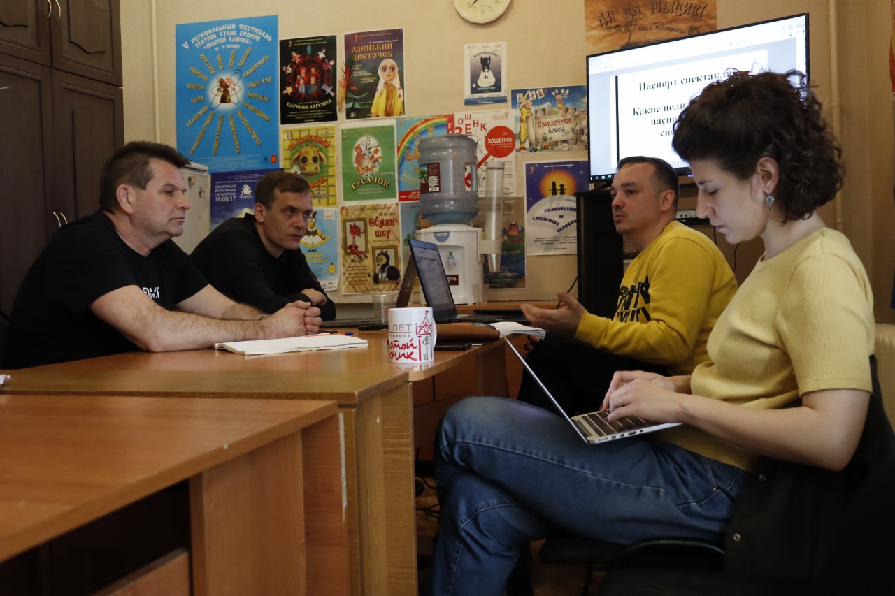 Тем временем в другой части театра проходили рабочие встречи по техническому направлению: обсуждали вопросы документации и основы делопроизводства, разбирали этапы выпуска нового спектакля и многое другое. Отметим, лаборатория Театра Наций приезжает в Железногорск уже в четвертый раз. И второй – в «Золотой ключик».