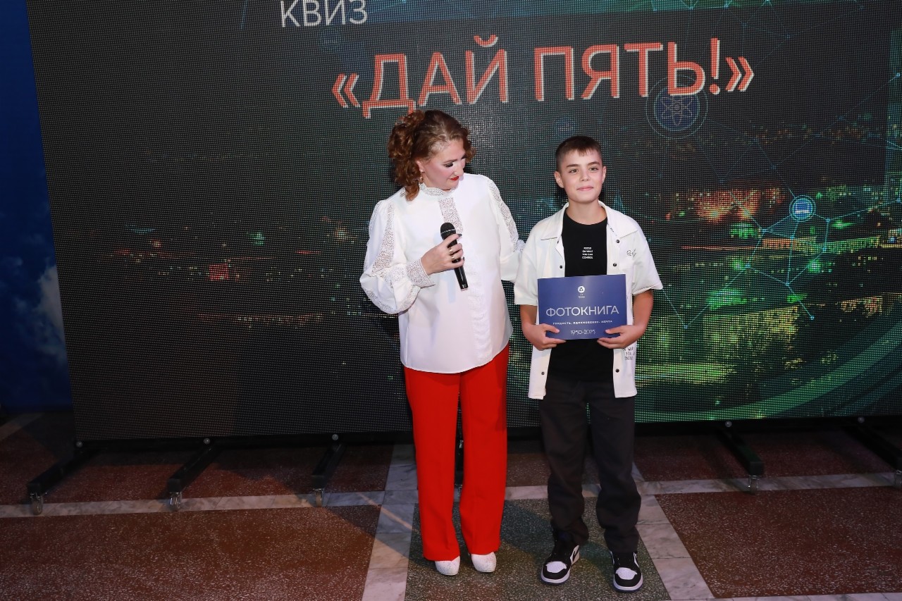 Кульминацией вечера стала командная викторина «Дай пять!». Здесь на равных соревновались дети и их родители – 12 семейных команд. Пять раундов, десятки каверзных вопросов об истории города, Горно-химического комбината и госкорпорации Росатом. Азарт, смех, радость от правильного ответа и дружеская поддержка при неудаче. Все это не просто игра, а возможность лучше узнать друг друга, вместе пережить волнение и гордость.