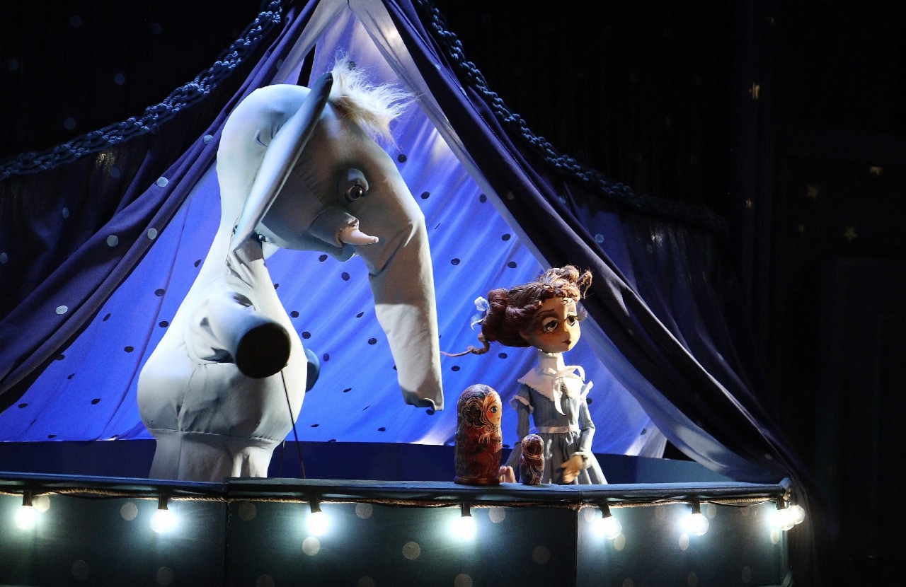 Полноправными участниками действия стали и свет, и музыка. Теплый «домашний» свет в комнате девочки сменяется яркими праздничными цирковыми прожекторами. А теневой спектакль передает мечты Нади во сне. Кстати, ее сыграла молодая актриса Василина Абраменко. Для нее «Слон» стал дебютом на профессиональной сцене, а работа с куклой – важным, но пока непростым опытом.