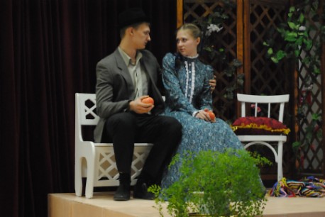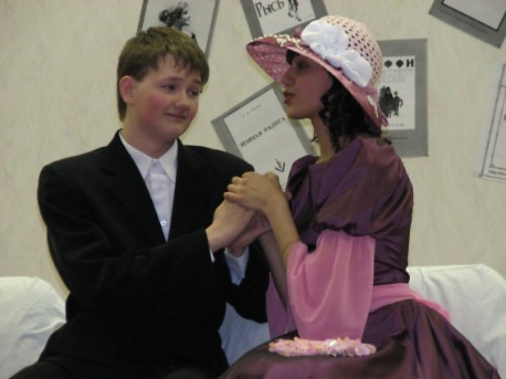 Декоративный камин, утварь под старину, огромный стеллаж с книгами во всю стену – антураж работы мысли и полета вдохновения. Необычный кабинет русского языка и литературы так и манит юных творцов. Тем более что именно с этого места театр и начался. Литературный вечер, посвященный творчеству Евгения Евтушенко, стал отправной точкой существования школьной студии. Педагоги почувствовали, что дети загорелись сценой, и отважно взялись за новое дело. Руководителями театра стали преподаватель русского языка и литературы Татьяна Чисникова и преподаватель английского Елена Пилипчук. Первый большой спектакль был создан по мотивам произведений Пушкина, и сегодня в репертуаре школьного театра лишь классика. Забегая вперед: премьерой этого года станет постановка по произведениям Тэффи «У зеркала» - нравственно-психологическое повествование о людях, их иллюзиях и заблуждениях.
