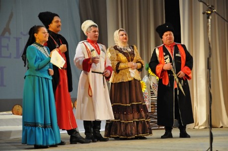На сцене на этот раз значительно меньше было просто развлекательных номеров - очевидно, обстановка в стране, связанная с событиями на Украине, настроила казачьи ансамбли исключительно на патриотический лад. Очень много внимания уделялось внешнему антуражу: каждая выходящая на сцену группа была одета в строгом соответствии с фольклорной принадлежностью. Впечатляли бурки и бекеши казаков, серебряные галуны и шашки.