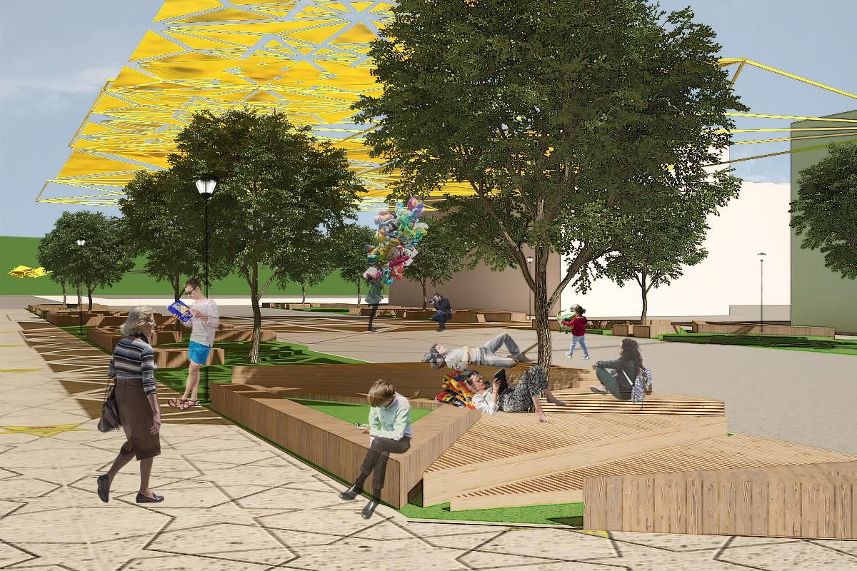А вот среда возле Молодежного центра должна привлекать молодежь. Но вокруг МЦ жилой район, где много пожилых людей, поэтому нежелательно создавать шум. То есть автоматически отпадают варианты со скейт-площадками и зонами активного отдыха. Нужно найти золотую середину - сделать пространство нескучным, интересным и в то же время спокойным.
