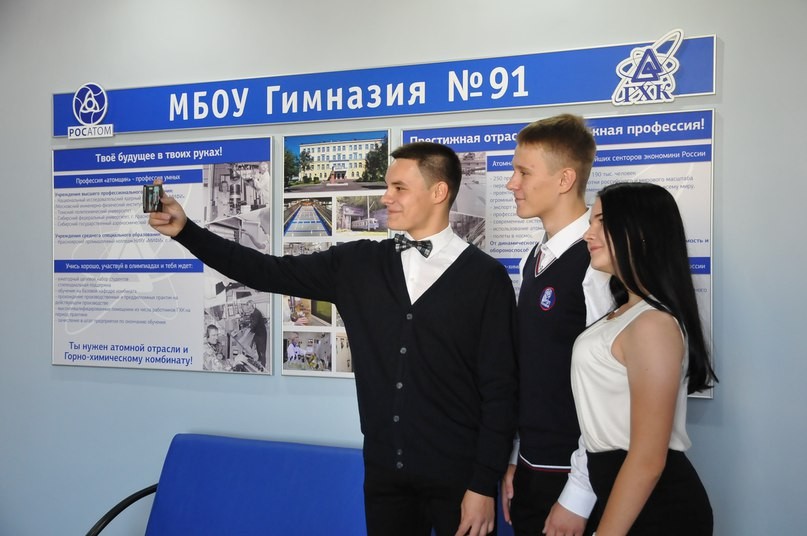 Одним из самых значительных достижений гимназии в «Школе Росатома» стало открытие атомкласса 1 сентября 2015 года. Это стало возможным благодаря высоким результатам учащихся в конференциях и олимпиадах, в том числе и росатомовских. Поэтому среди всех школ города и выбрали именно гимназию 91. Занятия по физике проходят в кабинете с самым современным оснащением и 3D-оборудованием: цифровые лаборатории базового и профильного уровней, 14 ноутбуков с доступом к виртуальным лабораториям, две документ-камеры, которые позволят снимать процесс исследования. Без содействия атомного ведомства о таком кабинете оставалось только мечтать, так как нынешнее финансирование школ, к сожалению, не предполагает подобных вложений.