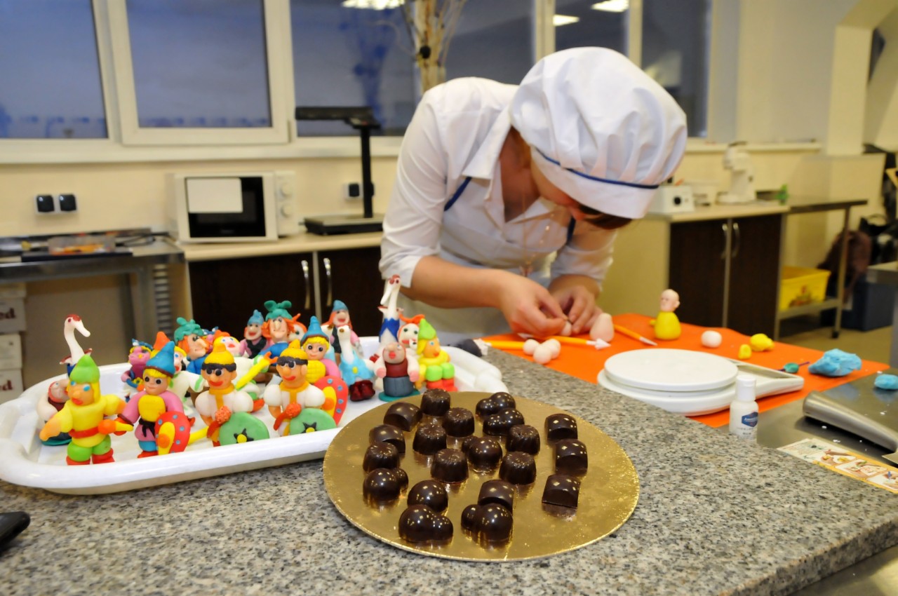 - Кондитерское дело разбито на три модуля: шоколад и кондитерские изделия, моделирование из мастики и антреме (выполнение тортов), - в перерывах между изготовлением мастичных рук, ног и туловищ рассказывает Римма Полянская, мастер производственного обучения, эксперт с правом проведения регионального чемпионата. - Мы как раз в конце прошлого года провели демонстрационный экзамен для выпускников, и на Новый год все они сделали своим близким подарки - коробки конфет ручной работы. Очень многие теперь изготавливают кондитерку на дому, эти люди известны в городе. Система обучения у нас мировая, отслеживается по интернету, и любой работодатель в любой стране может обратиться к нам, у каждого студента есть свой рейтинг, который зависит от того, как он сдаст финальный демо-экзамен. Это своего рода ЕГЭ, только по определенной профессии, - задание, что именно участники будут отрабатывать, приходит за сутки до экзамена.