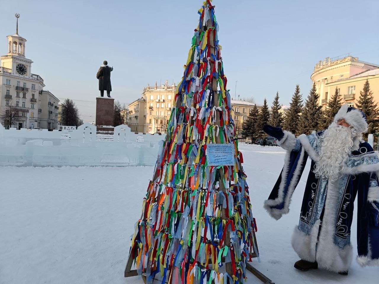 На площади Дворца культуры можно увидеть настоящую елку желаний! Сотрудники ДК предлагают жителям города взять лоскуток ткани, загадать желание и привязать его на яркую арт-елку. Они уверены, что все загаданные желания обязательно исполнятся!
