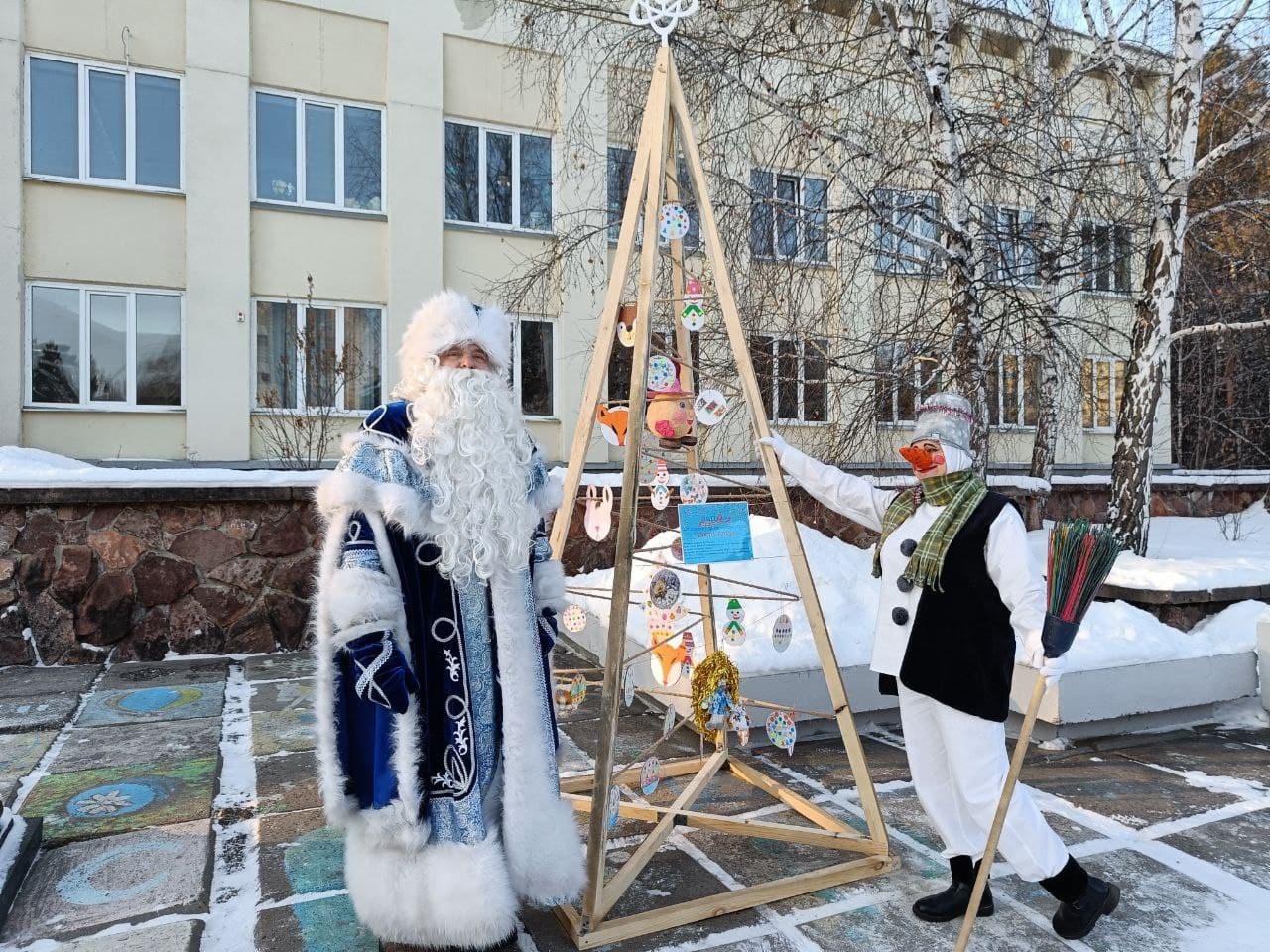 Еще одно необычное дерево стоит на входе в детскую библиотеку имени Гайдара. Поскольку 2022-й объявлен годом народного творчества, елку украсили изображениями героев русских народных сказок. Лисичек, зайчиков, медведей и снеговиков сделали учащиеся школы № 97 и школы-интерната № 179 вместе с библиотекарями.
