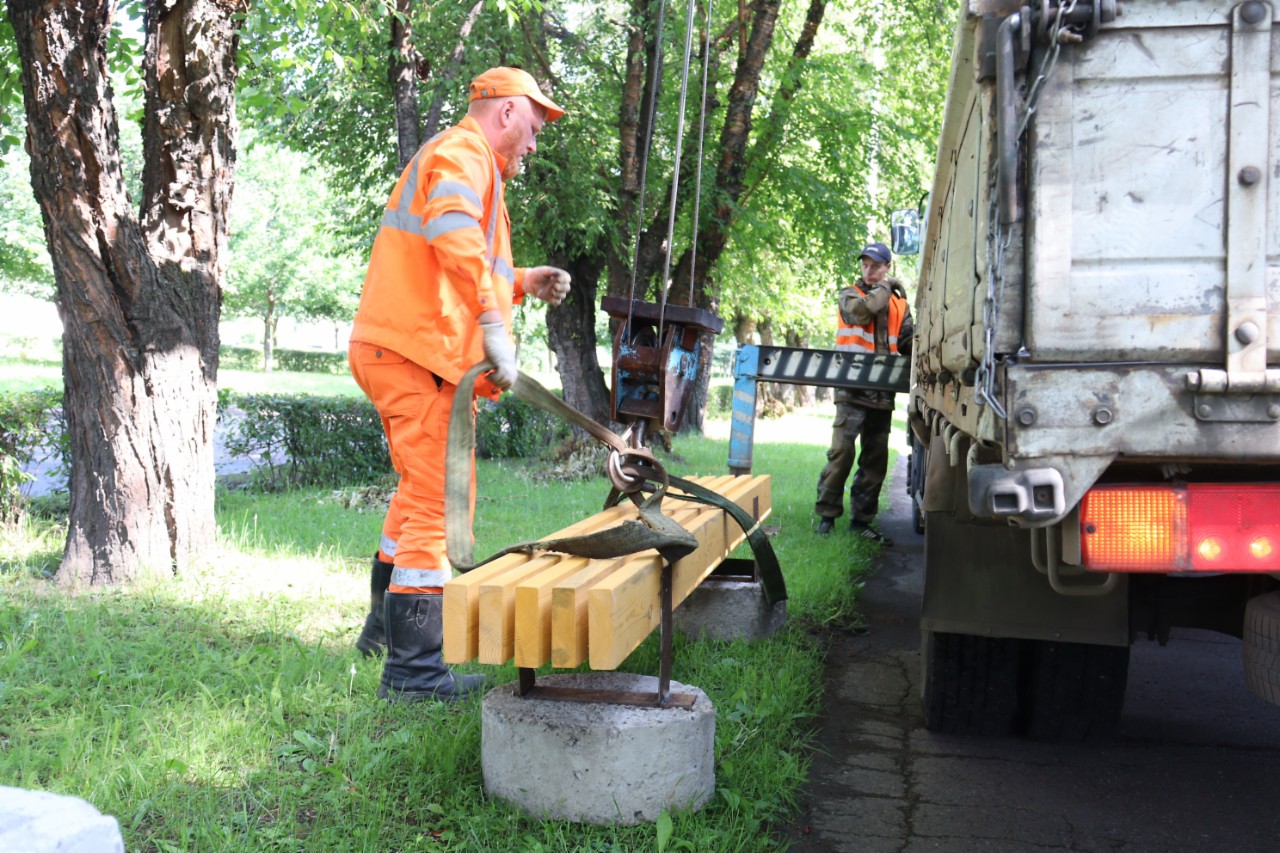 Свободных лавок у КБУ в запасе нет, их надо делать. Александр Демин, начальник участка дорожно-транспортного цеха КБУ, тоже подъехал к нам. Обещал дать задание мастерам, чтобы в кратчайшие сроки вопрос закрыть.