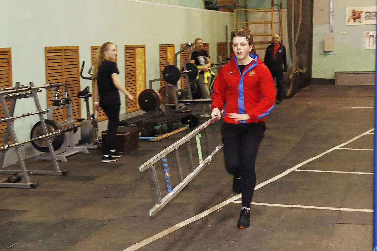 Михаил Иванович проводит тренировки в легкоатлетическом манеже Спортшколы № 1. Здесь построена учебная башня, на которую поднимаются по штурмовой лестнице. Перед ней яма глубиной один метр с опилками на песочно-хворостяной подушке. По правилам соревнований со старта с лестницей в руках бегут только юноши, девушки забираются по уже подвешенной. Но Михаил Иванович предложил попробовать. Конечно, непривычно, все-таки длина лестницы — четыре с лишним метра, да и что уж говорить — тяжелая она. Пробежалась, поставила на место. Тренер показал, как ее правильно перехватывать и выводить в вертикальное положение, чтобы подвесить за крюк на подоконник башни. Снова побежали, перехватила вертикально, зацепила, готово! Получилось с первого раза. Честно, сама от себя не ожидала. Те, кто занимаются пожарно-спасательным спортом, конечно, сразу же запрыгивают на вторую ступеньку и быстро взбираются вверх. Но мне пришлось немного отдышаться.