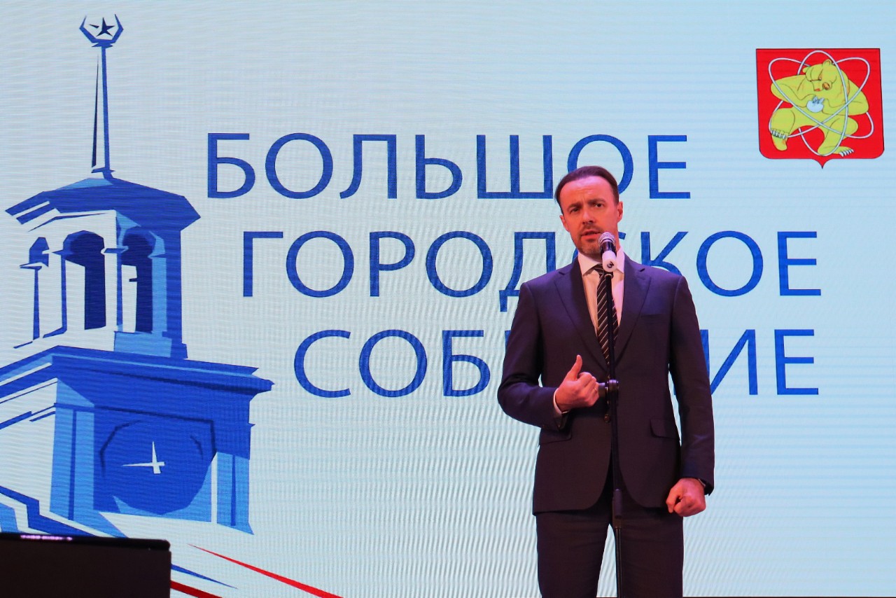 Глава ЗАТО Железногорск Дмитрий Чернятин со сцены поприветствовал участников собрания и отметил, что весь день был посвящен обсуждению будущего Железногорска. Утром в город приехала большая делегация из правительства региона: заместители председателя правительства Красноярского края Сергей Кузьмин и Алексей Медведев, министр экономики и регионального развития Татьяна Магдибур, министр цифрового развития Николай Распопин. Сергей Кузьмин назначен куратором нашей территории от краевого правительства. Высокие гости посетили градообразующие мероприятия – Горно-химический комбинат и АО «РЕШЕТНЕВ».