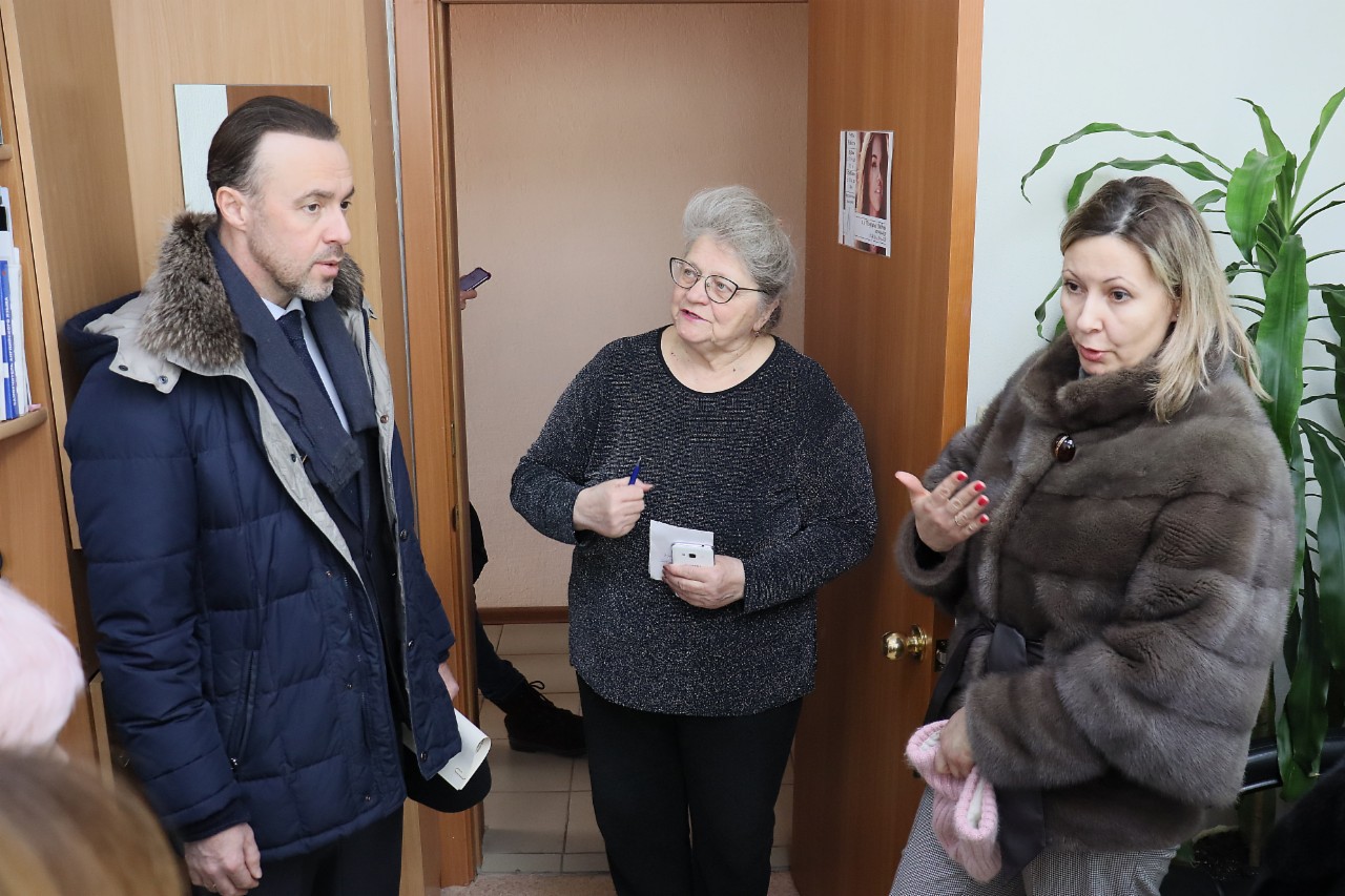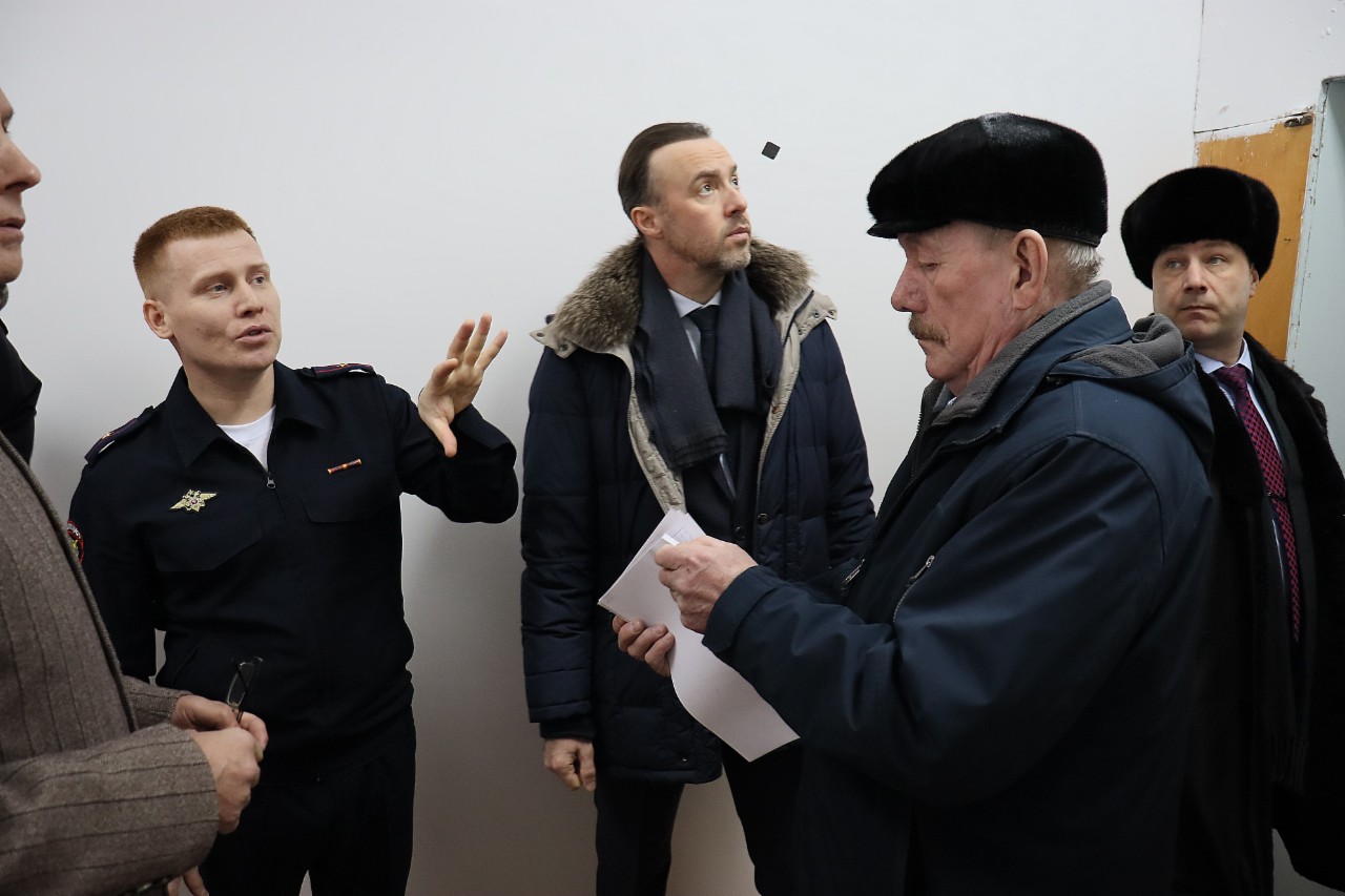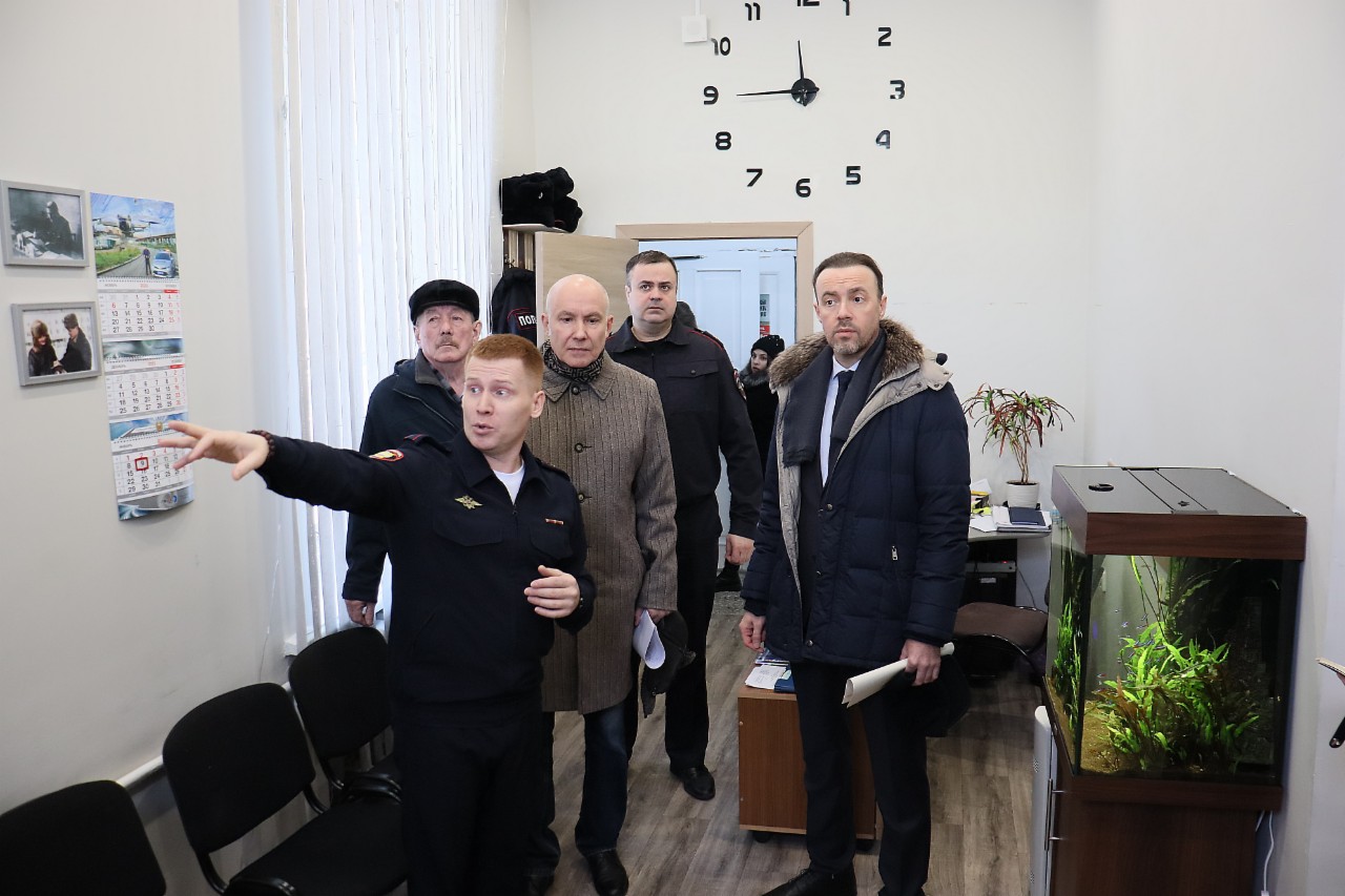 Дальше делегация отправилась к участковым полицейским на улицу Кировскую, 9. К Дмитрию Чернятину обратились сотрудники силовых структур с просьбой отремонтировать помещение, которое полиция арендует у муниципалитета. По словам старшего участкового уполномоченного пункта полиции в Подгорном майора Александра Кузнецова, за 20 лет его работы в отделе ремонт впервые начался всего два года назад. Тогда часть помещений переоборудовали, снесли несколько старых перегородок и покрасили стены. Но довести все до конца не удалось. Сейчас в помещении в первую очередь необходимо заменить деревянные окна и двери. Сотрудники жалуются на сквозняк и сильный холод, батареи с ним не справляются. Также обновления требует санузел.